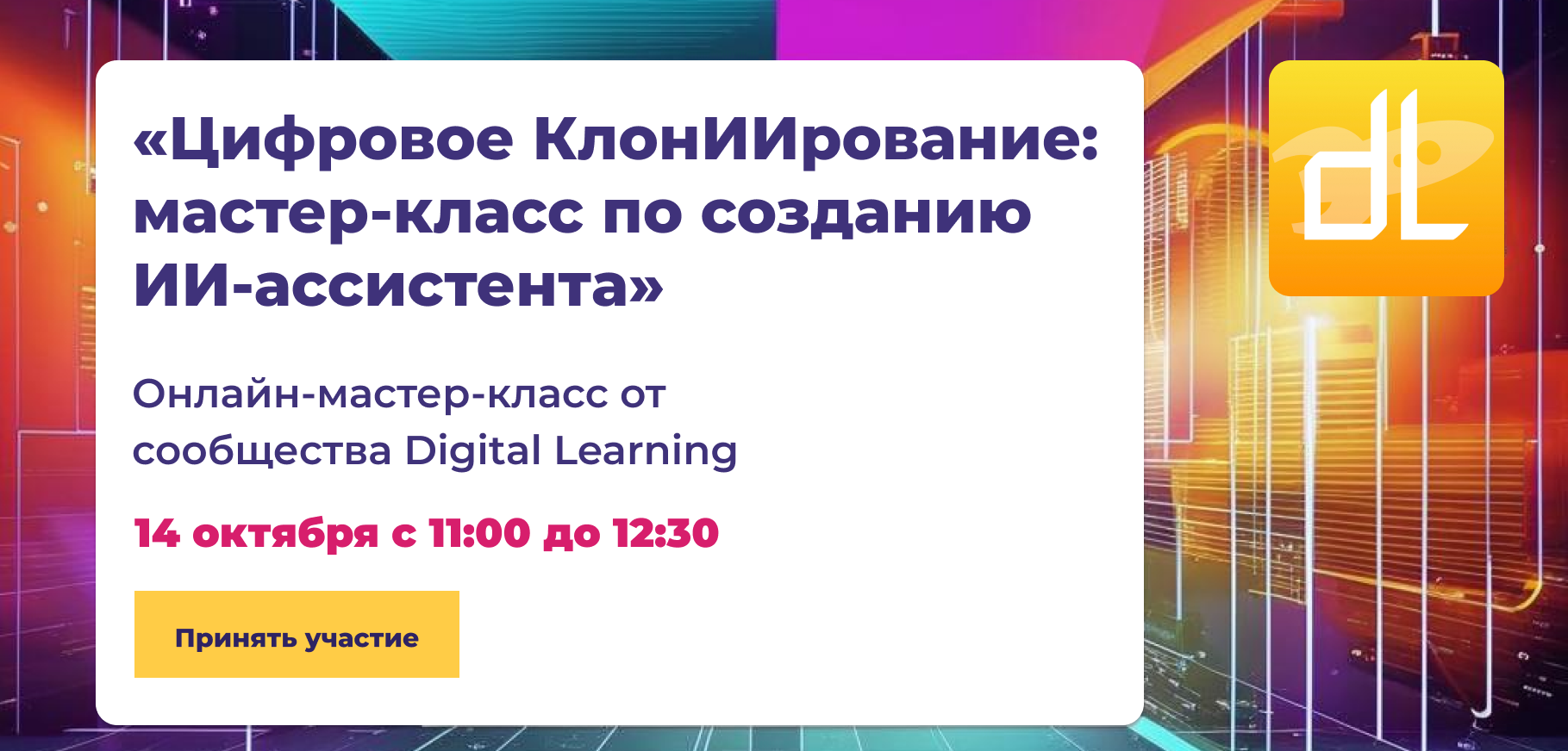 Не пропустите уникальный мастер-класс от сообщества Digital Learning и возможность научиться клонИИровать!